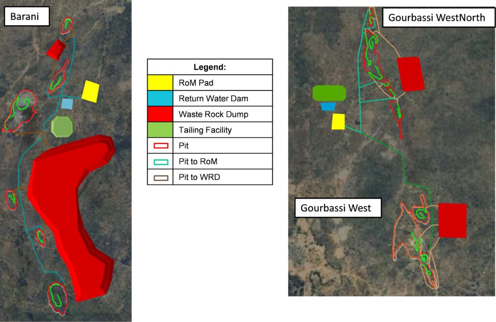 The mining plan is designed to be broken out into two phases, starting with open-pit operations at Barani East before transitioning to the Gourbassi deposits. A modular gravity and CIL processing plant will be commissioned at Barani for the first phase of production and later moved to Gourbassi as operations shift. This staged approach helps keep initial capital costs low, avoids duplicating infrastructure, and allows the Company to unlock value from multiple oxide gold zones across the SMSZ Project in a flexible and cost-effective manner.