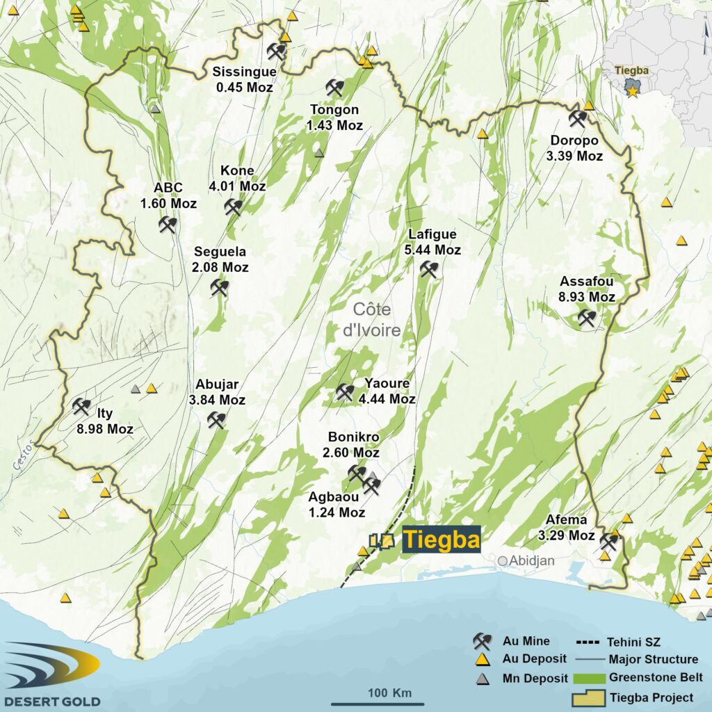 Image 3. Tiegba Project Country Scale Map Highlighting Major Gold Projects